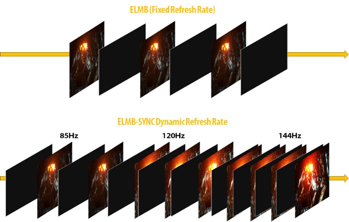 ELMB – Extremely Low Motion Blur කියන්නෙ Gameplay වලදි Screen එකේ ඇතිවෙන Blur එක නැති කරල Pixel Crisp image එකක් හදන්න Asus සමාගම හදුන්වා දුන්න අළුත්ම තාක්ෂණයක්. මේ හරහා සිද්ද වෙන්නෙ Screen එකේ Back-light එක වේගයෙන් on OFF කිරීමක්. මේ නිසා අපට Screen එකේ පේන Frames අතරමැද Blur අවස්ථාව පේන්නෙ නැහැ.