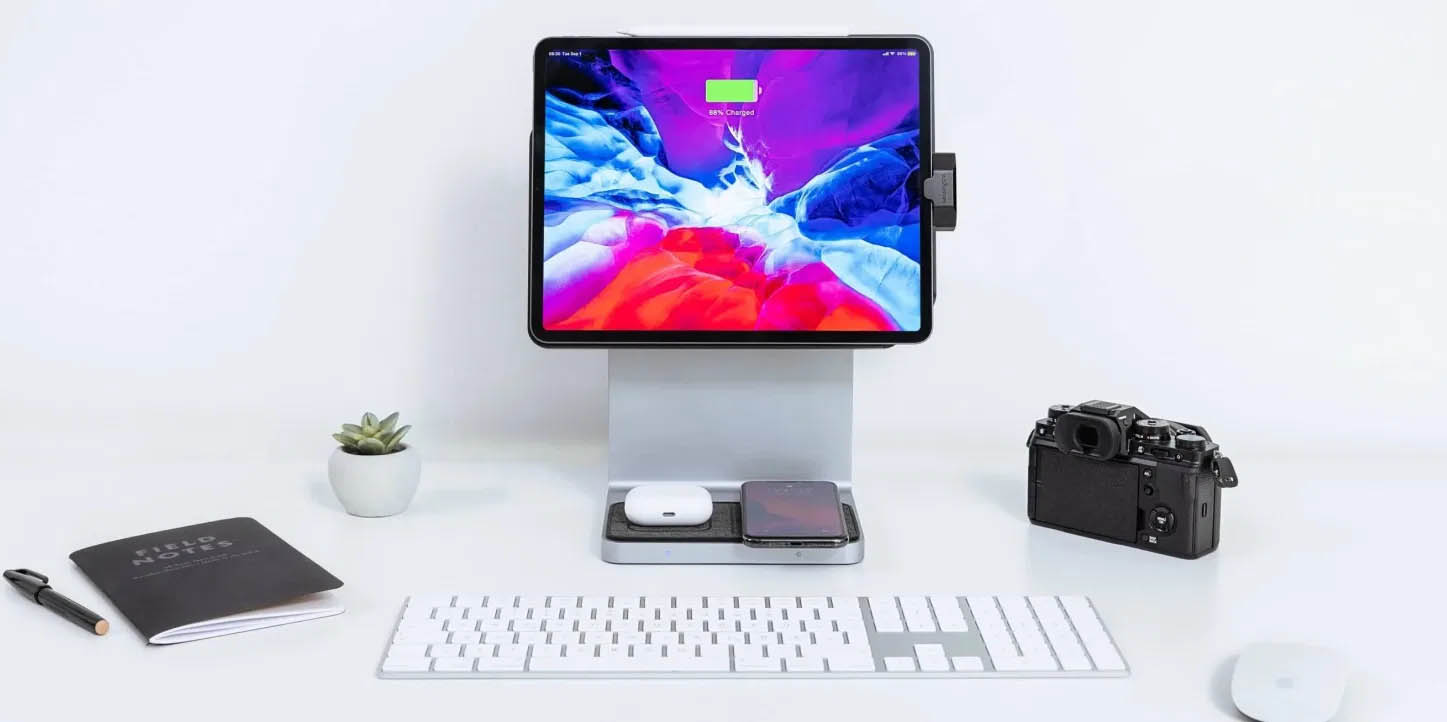 i pad එක i mac එකක්?Kensington studio dock හි ඇති Bluetooth keyboard එක සහ mouse එක මඟින් ඔබේ ipad pro හෝ air එක ipados mac එකක් බවට පත් කල හැකියි.Wirelless chargers දෙකක්ද මෙම dock එකට අන්තර්ගත වන අතර USB A Port 3ක්,USB C Port,HDMI 2.0,3.5 Headphone jack,SD Card reader සහ Gigabit Ethernet port එකක්ද අඩංගුවේ.මෙය වෙළඳපොලට නිකුත්කරන දිනයක් හෝ මිලක් තවමත් Kensington සමාගම විසින් ප්රකාශකර නොමැත.