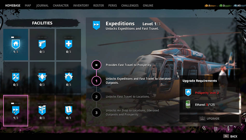 - Hope County පුරා පිහිටුවා තිබෙන highwaymen ලාගේ outposts වලට පහරදී ඒවා liberate කිරීමෙන් rewards ලෙස අපට ethanol ලබාගත හැකිය. එසේම අප විසින් අල්ලාගන්නා ලද මෙම outposts නැවත අතහැර දමා නැවත highwaymen ලාට අල්ලාගැනීමට සලස්වා නැවත අප එම outpost එකම අල්ලාගැනීමෙන් වඩාත් වැඩියෙන් ethanol ලබාගත හැකිය.මෙසේ 3 වතාවක් දක්වා කළහැකි අතර එක් එක් වතාවේදී defense එකට පැමිණෙන highwaymen ලා කලින් වතාවේ අයට වඩා powerful වේ.