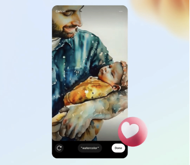 මේ ආකාරයට ඔවුන් Instagram සදහා AI image editing සහ sticker-creation යන නව විශේෂාංග හදුන්වා දෙන්න සූදානම් වෙනව. මෙහි “Restyle” නමින් AI filter එකක් තිබෙනව. එමගින් පරිශීලකයන්ට තමන්ගේ ඡායාරූප වෙනස් පෙනුමක් එන විදියට සංස්කරණය කරගන්න පුලුවන්. මෙහිදි ඔබට සංස්කරණය කරගැනීමට අවශ්ය ආකාරය විස්තර කර දෙන්න පුලුවන්. එනම්, සංස්කරණය කරගන්න අවශ්ය ඡායාරූපය සදහා ‘collage from magazines and newspapers, torn edges’ ලෙස විස්තර කිරීමක් කර දුන්විට AI යෙදුම මගින් ඒ ආකාරයට ඡායාරූපය සකසා දෙනව.