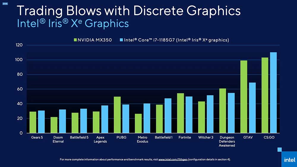 11th Gen processor වල නව intel 12th Gen Xe integrated graphics ඇතුලත් කර ඇති අතර එය කලින් පැවති intel UHD 630 ට වඩා 50% පමණ performance වැඩි වීමක් පෙන්නුම් කරන බව සඳහන් වෙයි.ඔවුන් පවසන පරිදි මෙම 12th Gen Xe graphics මඟින් 1080p gaming(low settings)හැකියාවක් පවතින බවයි.එමෙන්ම මෙම processor වල AI තාක්ෂණය ද වැඩි දියුණු කර ඇති අතර intel deep learning boost මඟින් සංකීර්ණ AI වැඩ සිදු කිරීමට ඇති හැකියාව වැඩි වන බව සඳහන් අතර එය සමාන්ය පරිහරණයේදී කෙතරම් වැදගත් වේද යන්න එතරම් පැහැදිලි කර නැත.