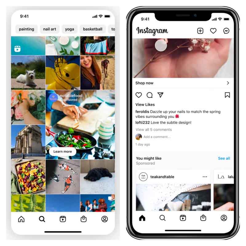 Instagram සේවය නිවේදනයක් නිකුත් කරමින් පවසා සිටියෙ පරිශීලකයන්ට Explore tab එක තුල හා profiles තුලද මින් ඉදිරියට දැන්වීම් දැකගත හැකිවන බවයි. මීටපෙර දැන්වීම් දැකගන්න ලැබුනෙ Instagram feeds තුල පමනයි. Explore homepage තුල මෙසේ දැන්වීම් සදහා විශාල ඉඩක් වෙන්කර ඇතිබව දැක්වෙන ඡායාරූපයක් Instagram වෙතින් ඉදිරිපත් කර තිබුන. පහල දක්වා ඇත්තේ එයයි.