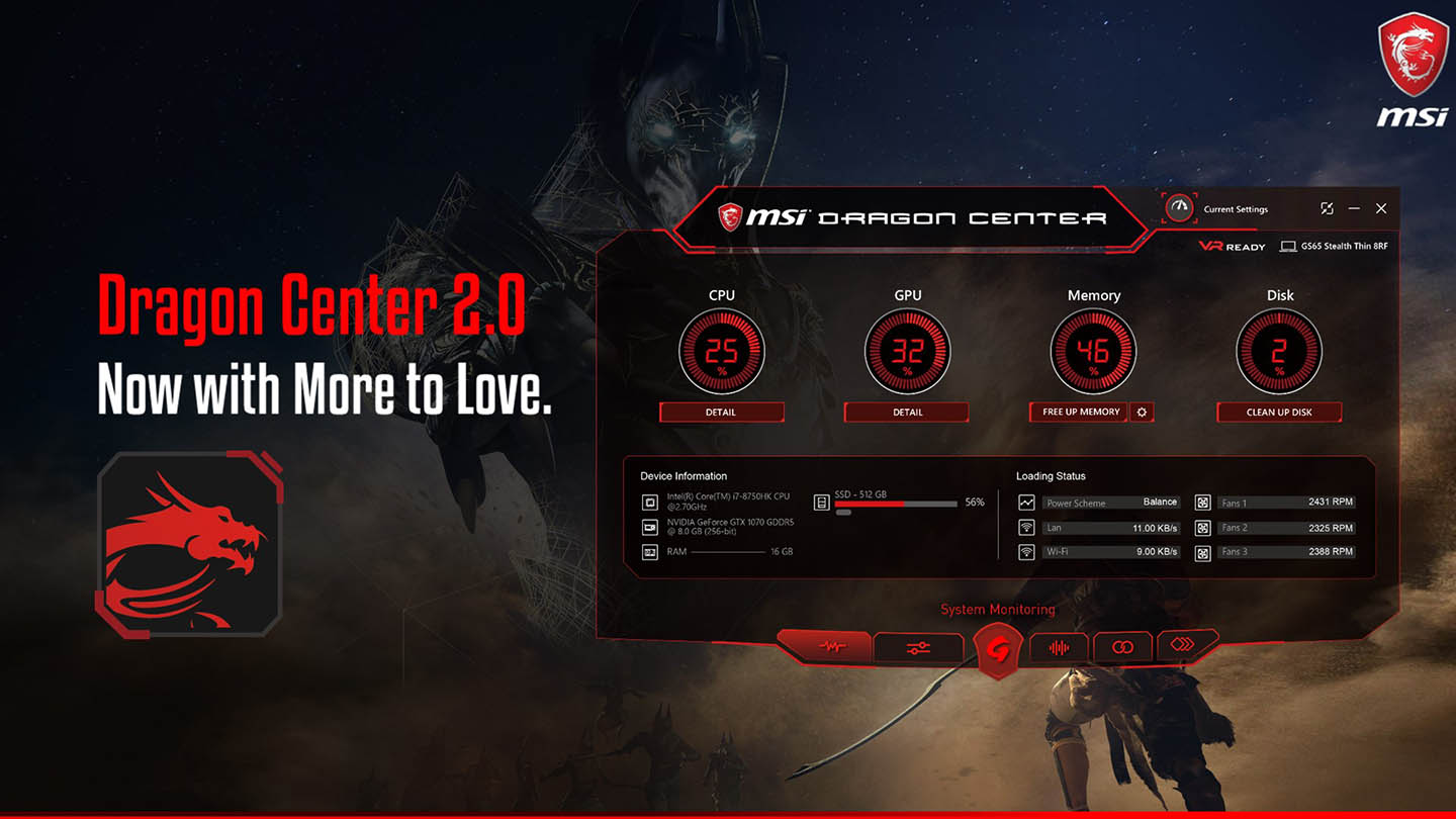 Dragon center 2.0 හරහා සම්පූර්ණ පද්ධතියේ Overclocking, Monitoring සහ වැඩකටයුතු රැසක් පහසුවෙන් කරගැනීමේ හැකියාව ලැබෙනව. ඒ වගේම එක් එක් අවස්ථාවට සකස් කරන ලද Profile හරහා මාරුවීම තුලින් (උදා – Gaming Mode) ඒ අවස්ථාවට උපරිම Performance ලබාගැනීමට හැකියාව ලැඩබනව.