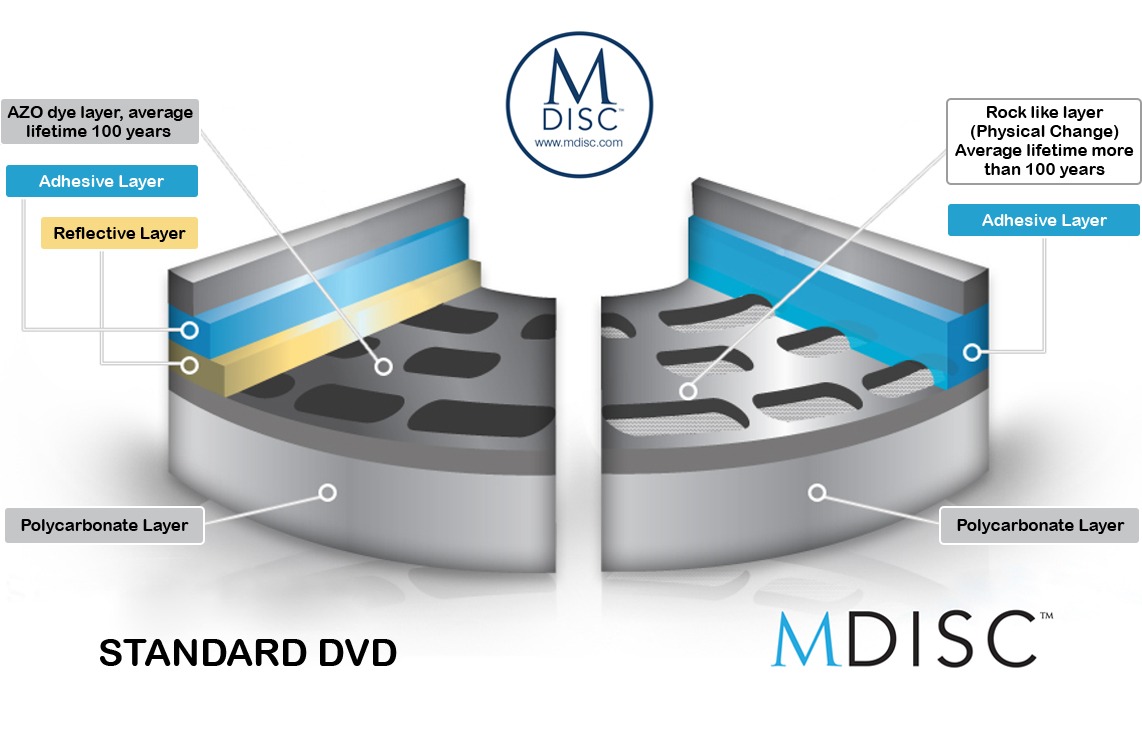 මෙන්න මේ Digital මතකයන් ජීවිත කාලයටම සහ ඉන් පස්සෙත් තියාගන්න තමයි M-Disc තාක්ෂණය හදුන්වල දීල තියෙන්නෙ. මේ තාක්ෂණයෙදි Disc එකක් ලියන එහෙමත් නැත්නම් Write වෙන විදිහ වෙනස් වෙනව. සාමාන්ය DVD එකක් write කරද්දි වෙන්නෙ Laser beam වලට සංවේදී විශේෂ ස්ථරයකට Writer එකේ laser beam එක මගින් දත්ත ගබඩා කිරීමයි. මේ ස්ථරය අධික උෂ්ණත්වය, අධිත තෙතමනය වගේ අවස්ථා වලට ලක්උනාම ඉක්මනින්ම හානිවීම් වලට ලක්වෙනව.